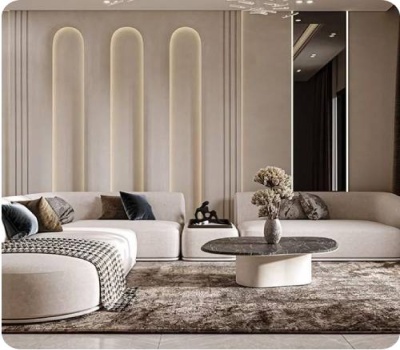 نورپردازی: ترکیب نور سقفی و دیواری برای ایجاد عمق و گرما در فضا.